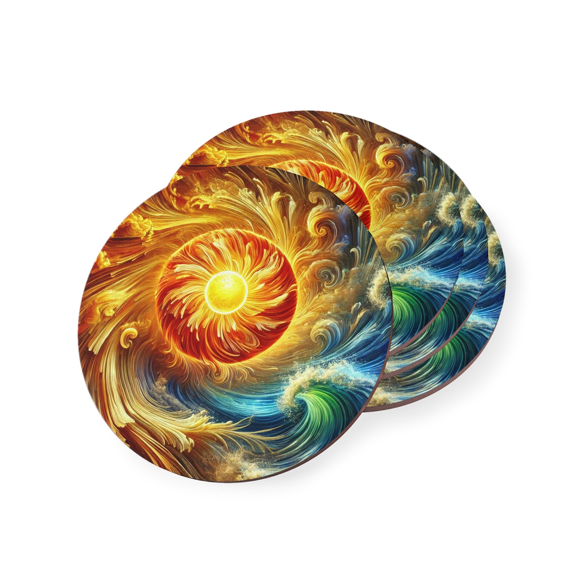 Turn your coffee table into a vibe. These cork-backed coasters bring a punch of sun and surf β bold yellows, deep blues, and a slick glossy finish that catches the light just right. Whether itβs your morning brew or a late-night drink, these bad boys keep things cool (and your surfaces safe).