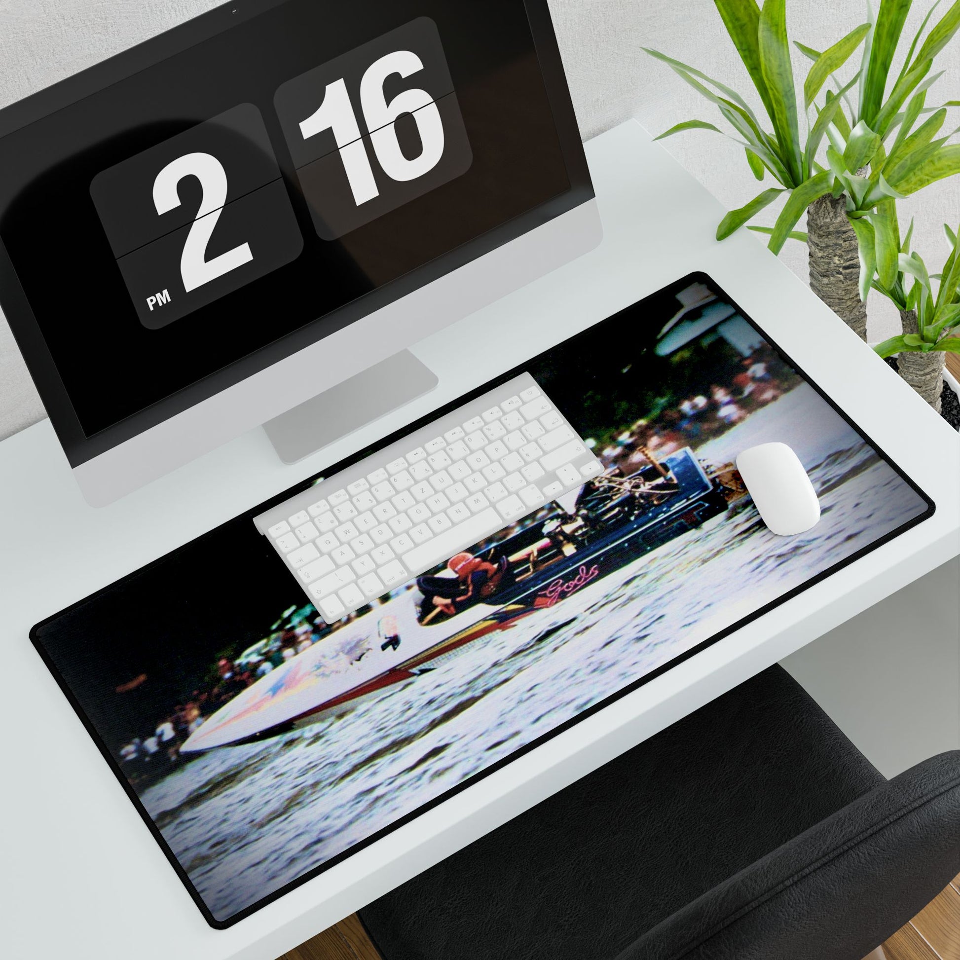 Feel the rush every time you sit down! This bold desk mat brings the buzz of race day to your workspace β powerboats, cheering crowds, and pure summer energy.