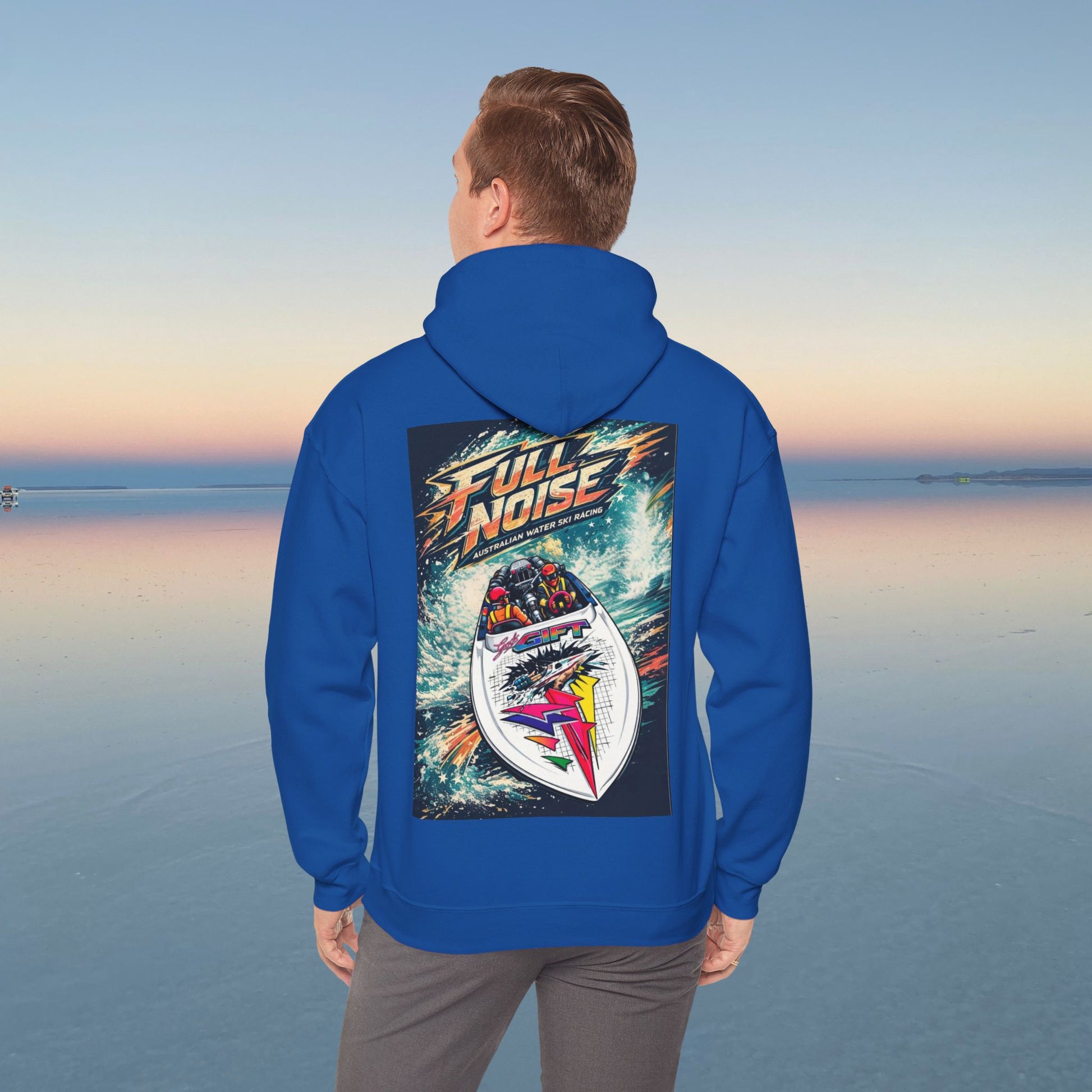 With a spray of wake off the transom and outrageous racing graphics splashed across the design, this hoodie celebrates extreme Aussie sport spirit — honouring a boat and team that broke every rule, chased the fastest motors in the world, and changed water-ski racing forever. 🇦🇺🔥